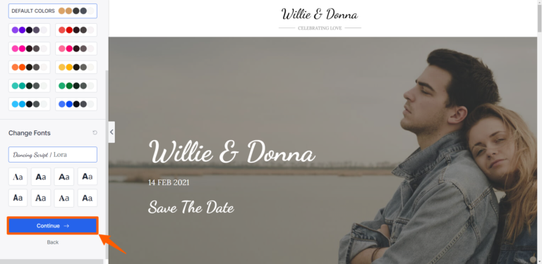 Step 9: You can change that section’s font and color scheme. After changing, click on Continue.