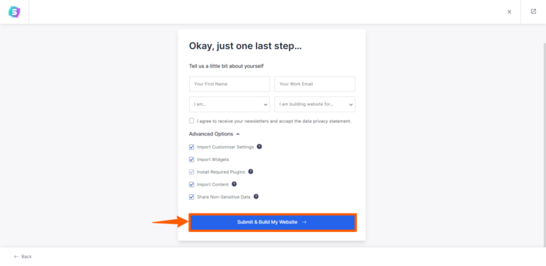Step 10: Now, you need to let the plugin install the necessary plugins on your behalf, then click Submit & Build My Website.