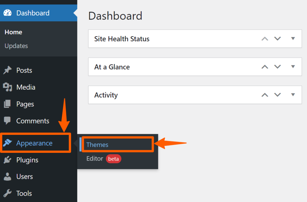 Step 1: Go to the Dashboard, hover on Appearance, and click on Themes.