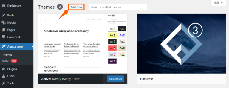 Step 2: Then, click on Add New to add a new theme.