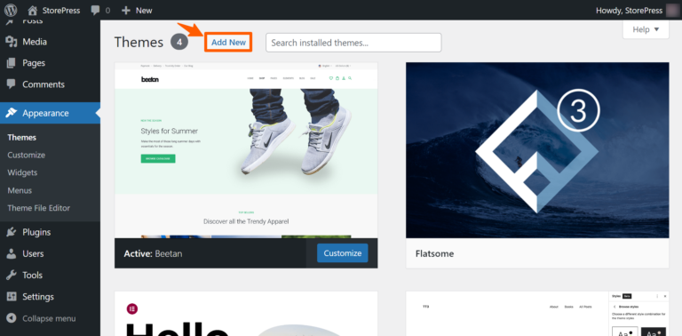 Then click Add New to add a new theme.
