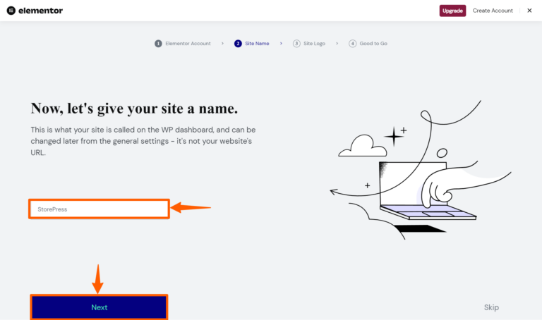 Step 7: Give a name to your site and click Next.