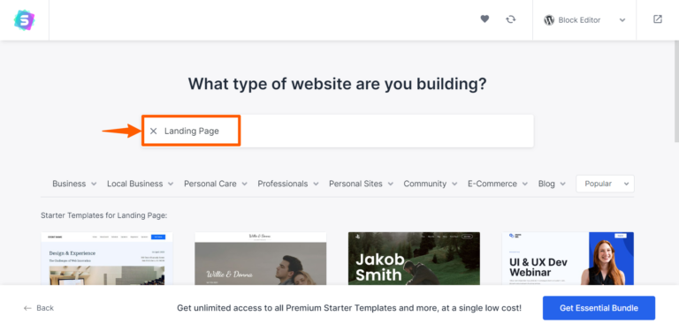 Step 7: You’ll find various templates there. Select any of them, or search for Landing Page.