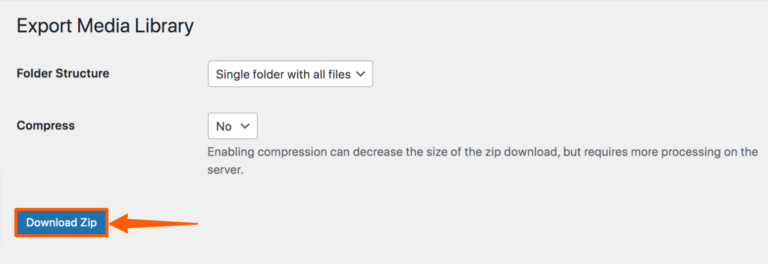 Step 4: Now, the Export Media Library page will appear. Select the Folder Structure, and Compress the status as your need. Then click on Download Zip to download the zip file.