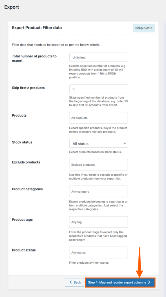 Step 6: Now, filter data using different parameters. Then click on Step 4: Map and reorder export columns.